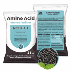 Amino Acid Granule NPK 6-1-1 is made from molasses, sugar beet extractives, starch syrup. After extracting amino acid by advanced microbial fermentation technology, the remnant is concentrated and hydrolyzed and finally made into quick-acting granule organic fertilizer by advanced spray granulation technology.