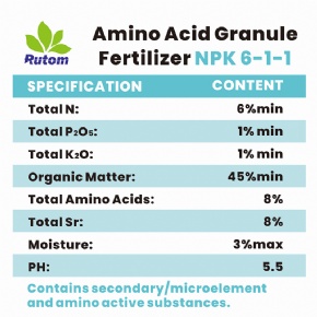 · Rutom 6-1-1 is rich in organic nitrogen, rapidly decomposed in the soil, which can supply nitrogen immediately to the plant and assist in rapid growth and fruit growth.
